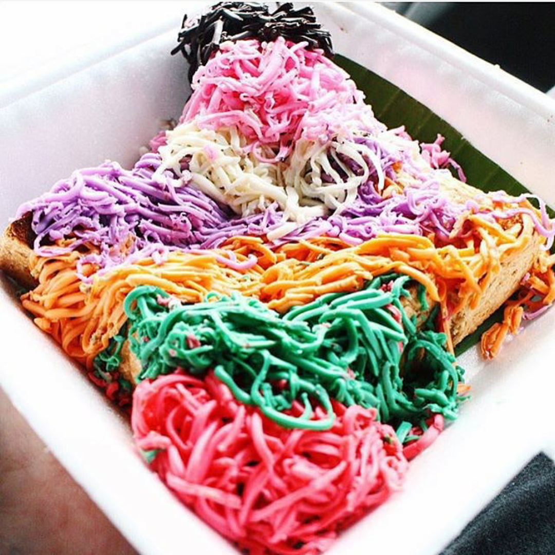 Itu roti bakar pelangi dik .... dan ini dia minumnya ...susu hangat stroberry...
